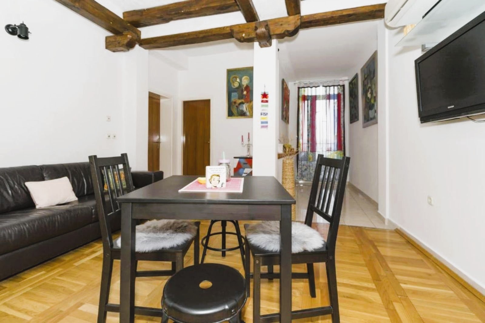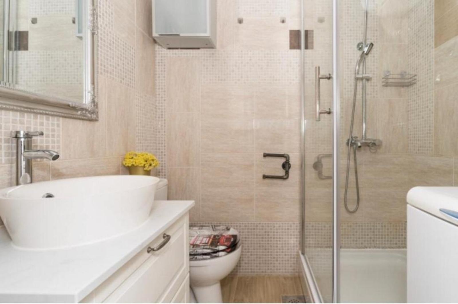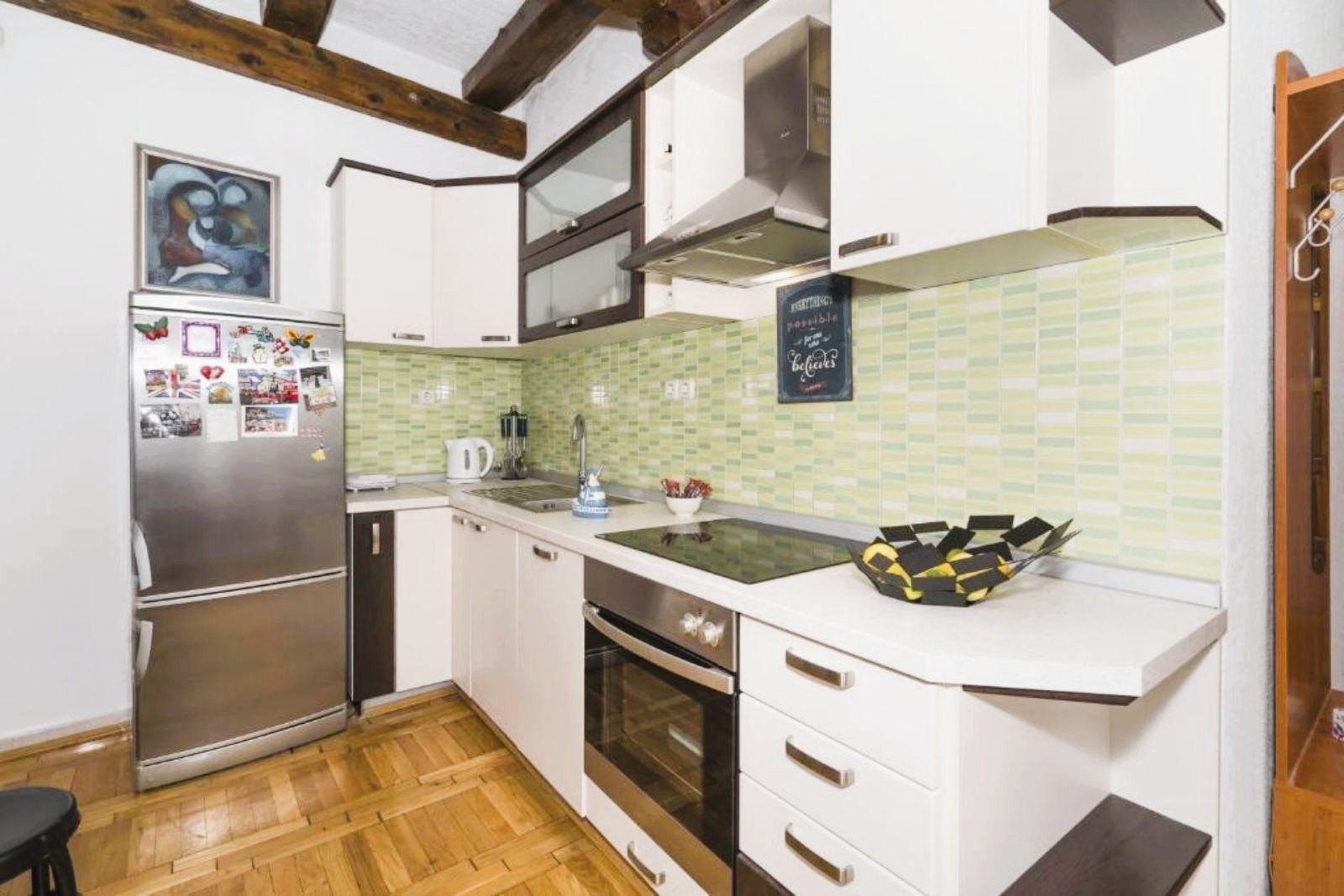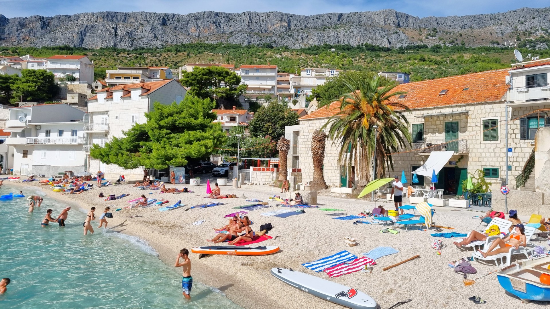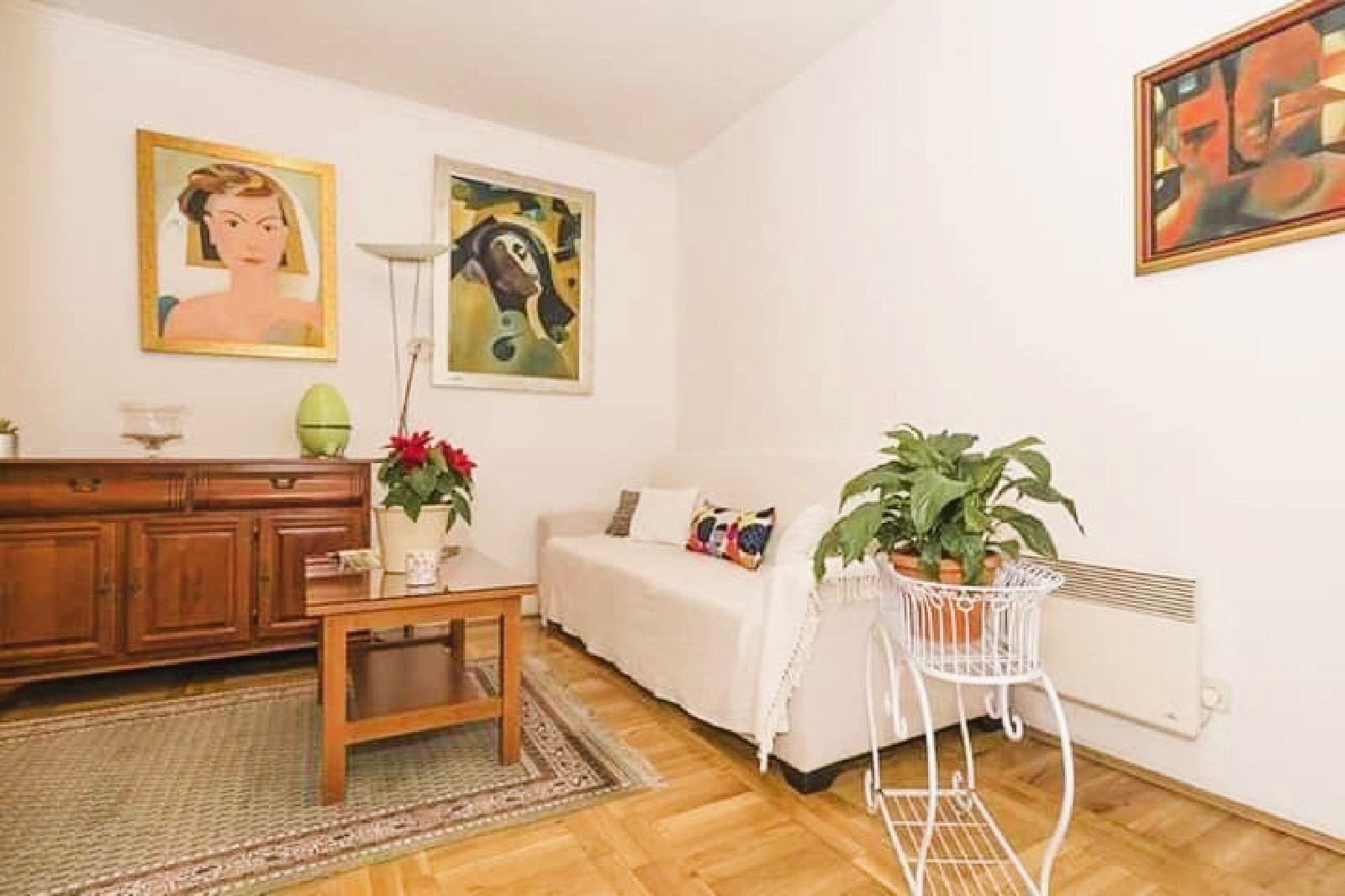 A comfortable three bedroom apartment with an interior area of 145.56 m2 with two covered terraces (total of 12.13 m2), a balcony of 31 m2 and a garage of 12 m2, converted into two smaller flats/apartments, with a nice view of the sea, fully facing south, sunny, approx. 300 meters from the sea and a pebble beach, completely furnished and equipped, on the 1st floor of a private house (ground floor at the back).