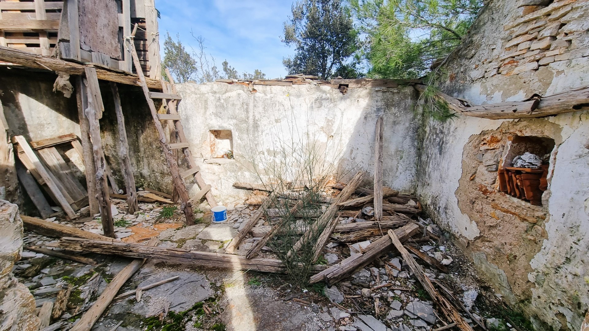 A stone house-ruin with accompanying smaller ruined buildings and a water tank on flat agricultural land of 12,900 m2, in Stari Grad plain, which is under the protection of UNOSCO, outside the strict protection zone, access by car, in need of complete reconstruction, no water and electricity connections nearby, close to Stari Grad, Vrboska and Jelsa, approx. 1.3 km from the sea and the beach, 20 minutes from the town of Hvar.