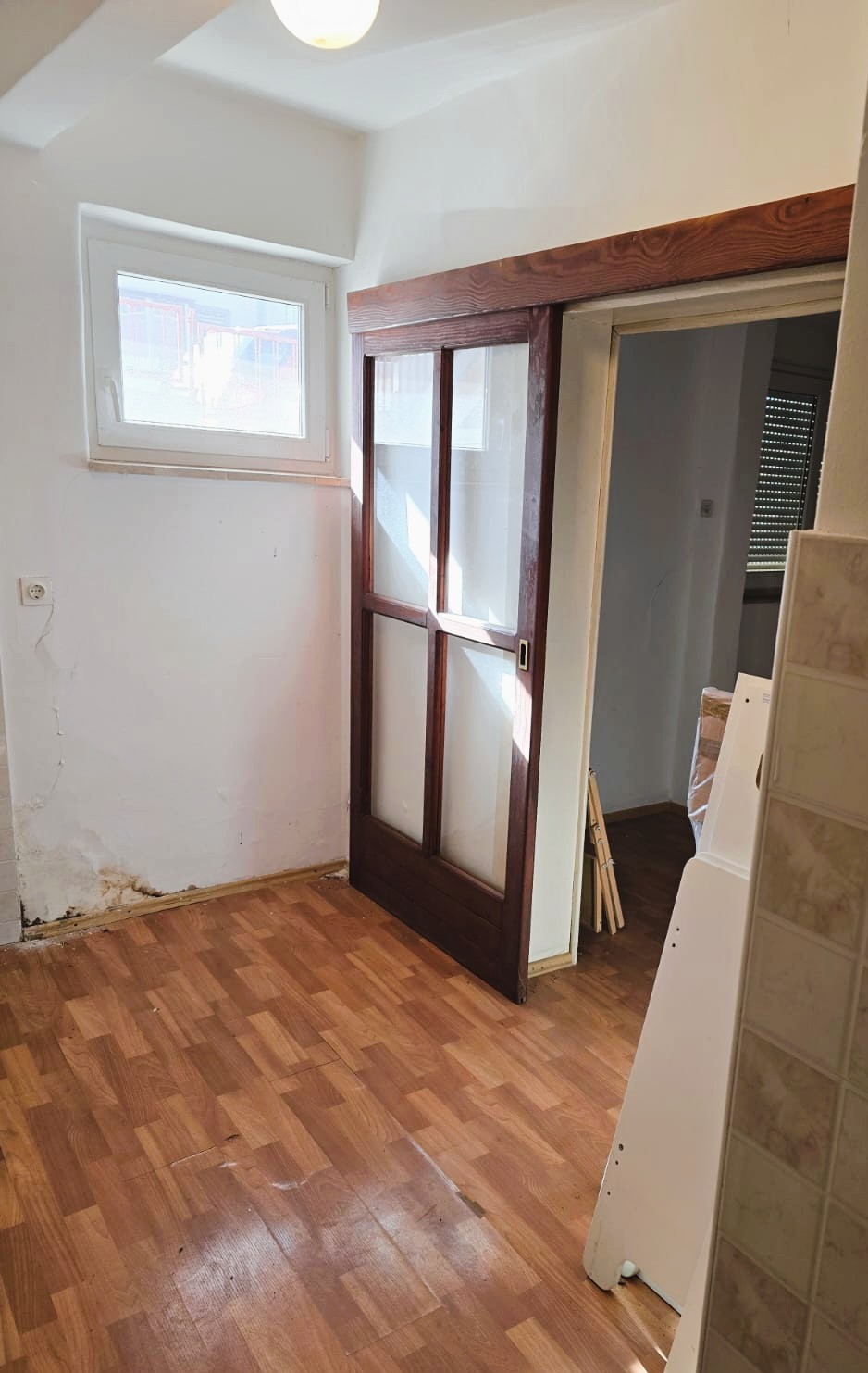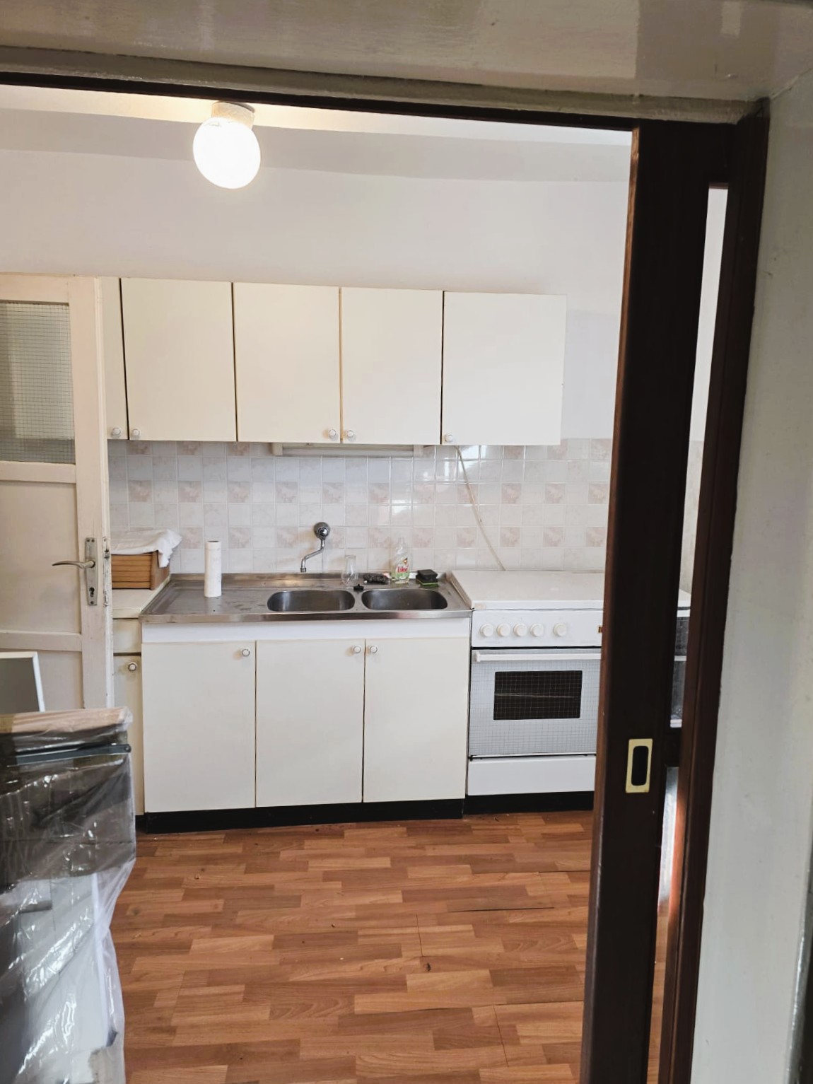 Single-storey house with a total gross area of 105 m2, located in a quiet location in Brda area, consisting of two bedrooms, a kitchen, a toilet, two storage rooms and a hallway, with two gardens of a total area of 69 m2, entrance from two streets, legalized.