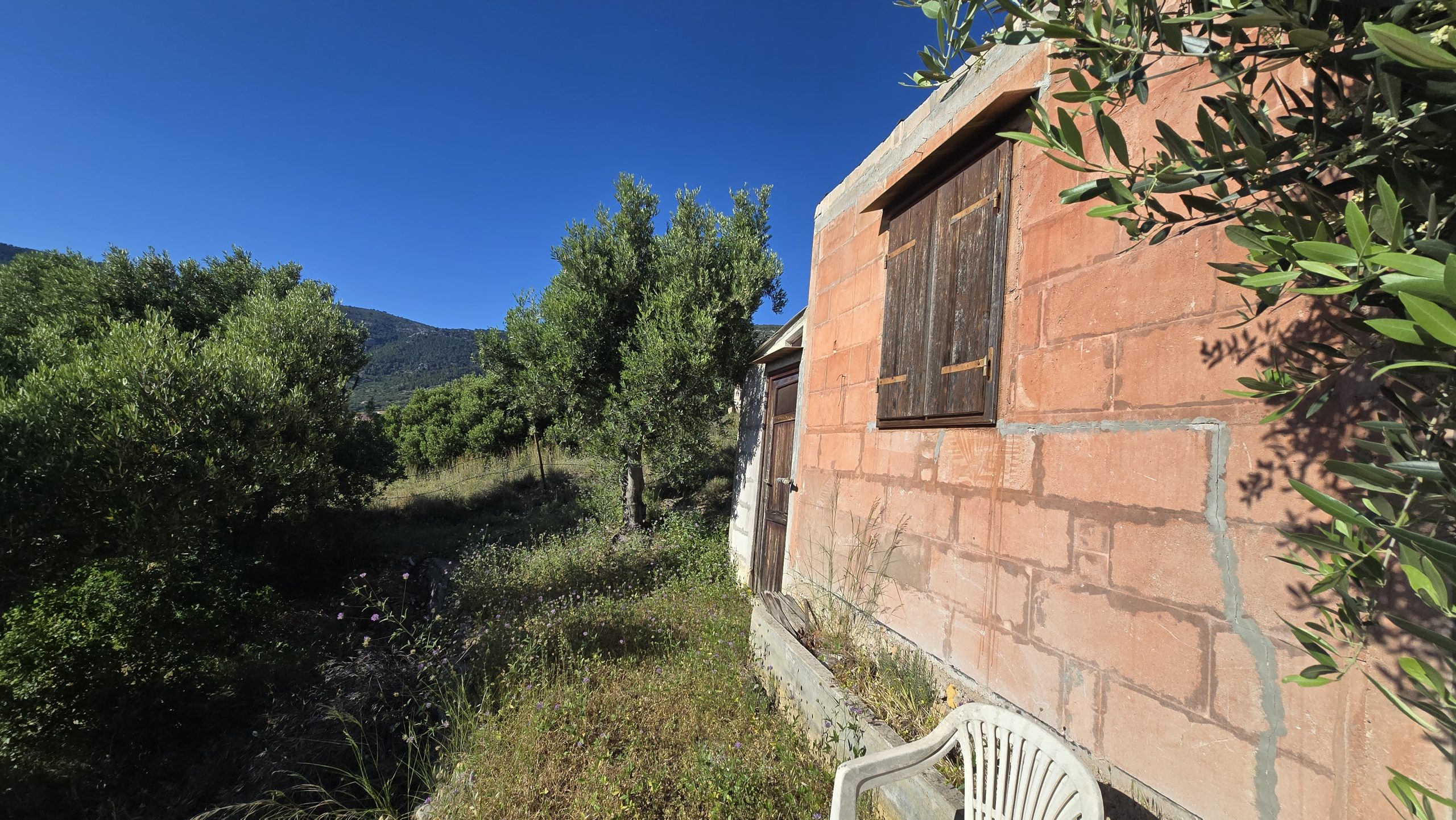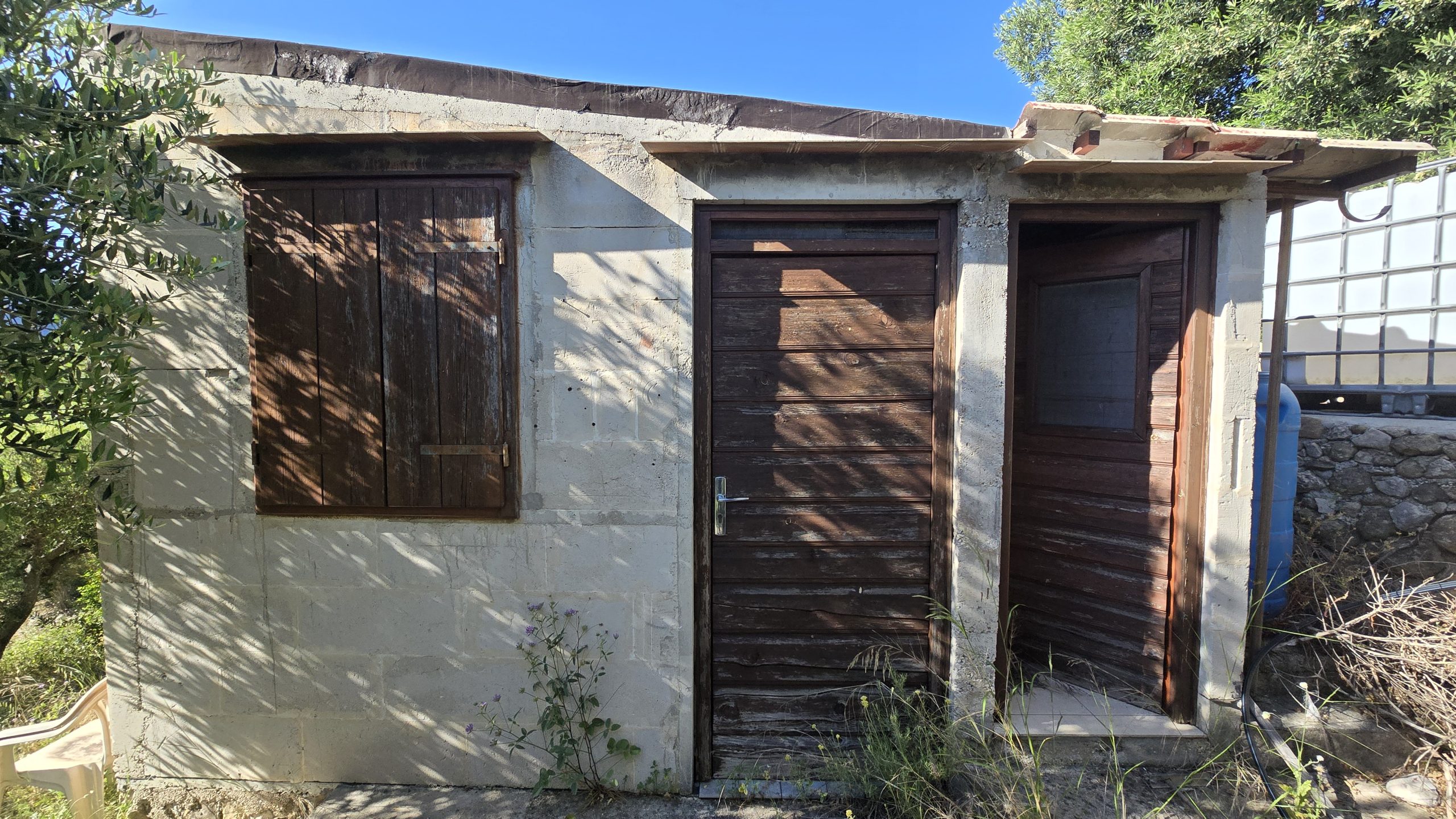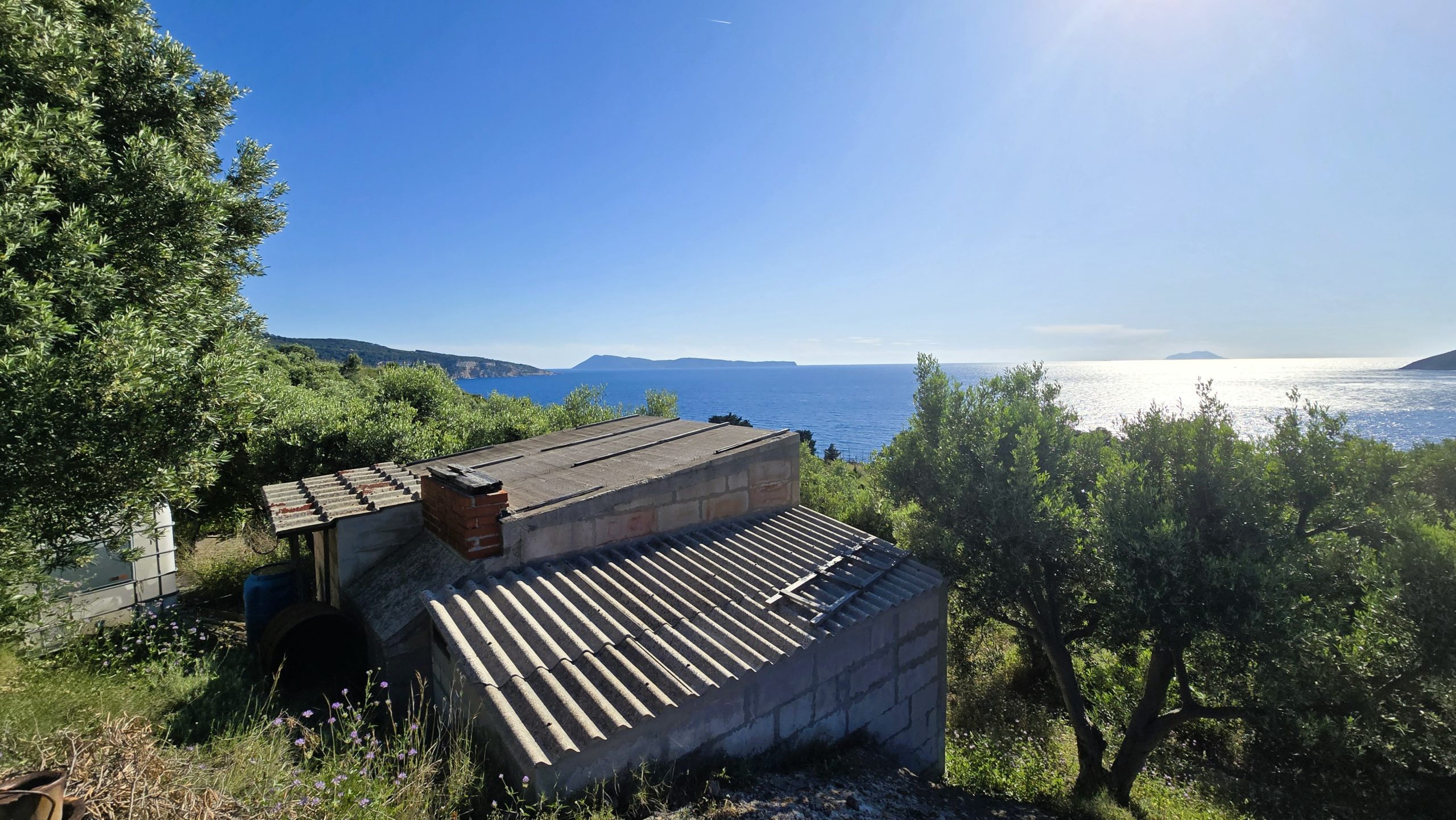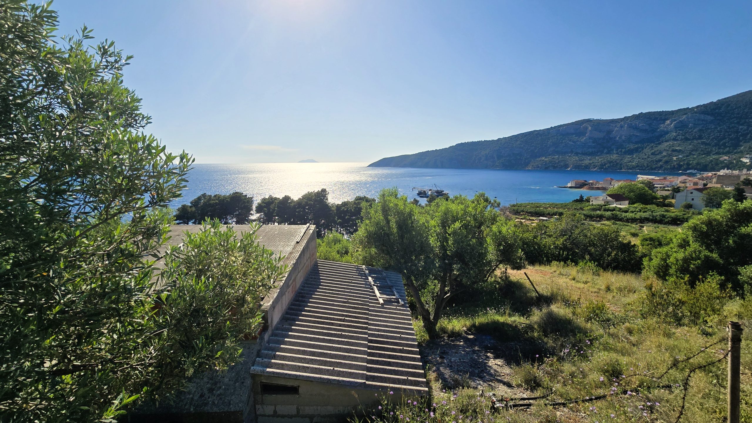 A one-story house of 20 m2, on a plot of land of 4,000 m2 - an olive grove with 150 olive trees, in a beautiful location above Kamenice beach, entirely in the T3 (camping) zone, fantastic view of the sea and Biševo, with only a pedestrian path, currently no construction is possible, the existing building is legalized - mixed use,
