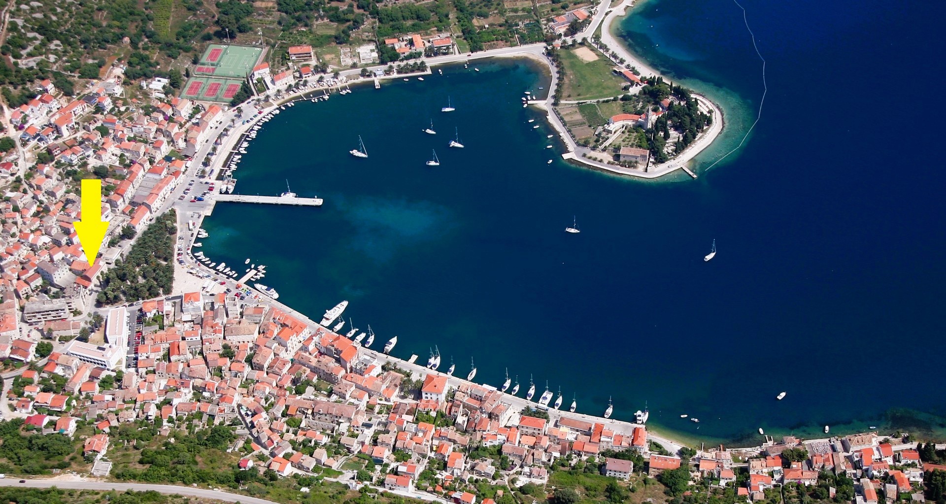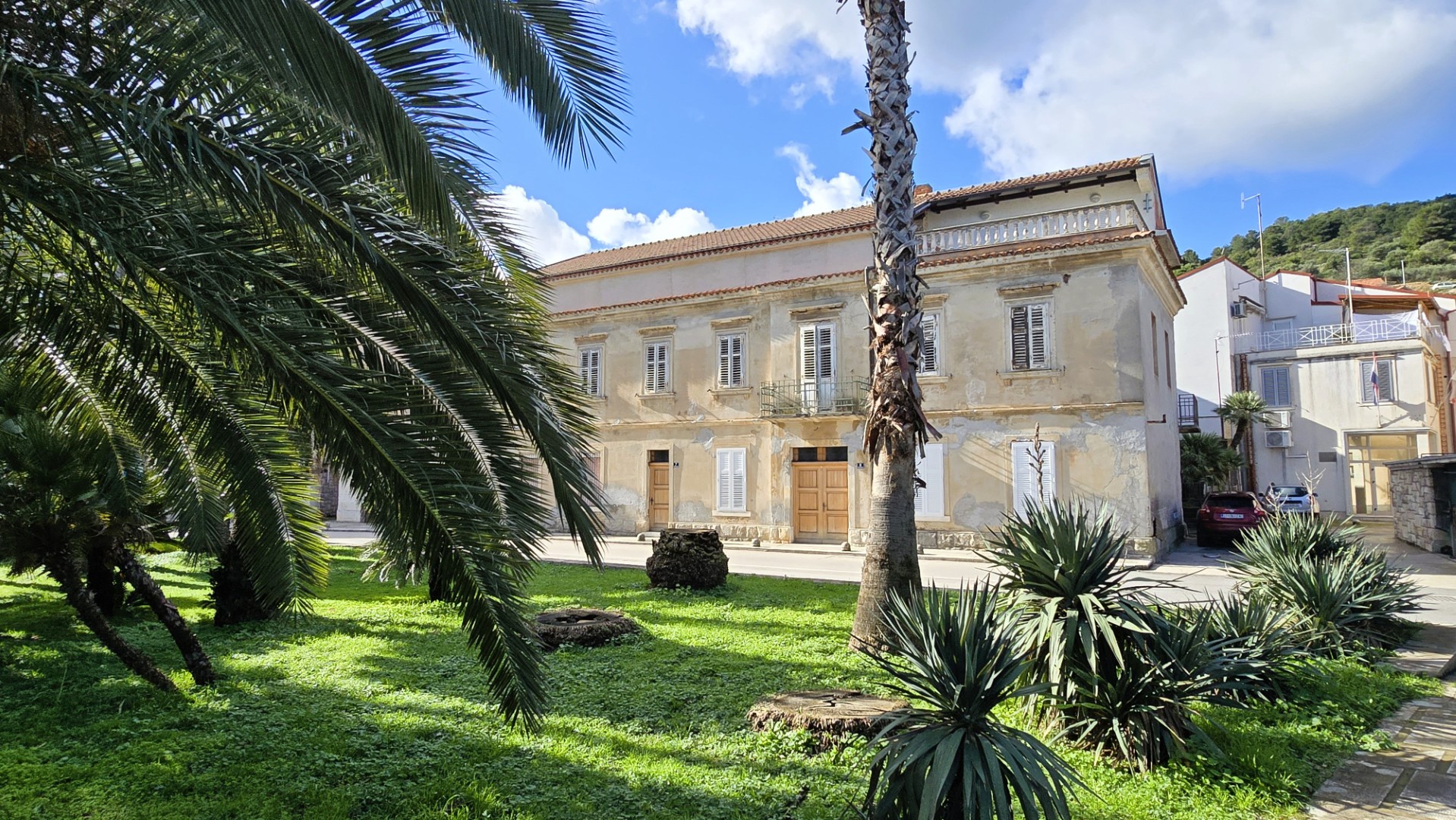 A unique property in the center of Vis - a 110 year old house with a total gross area of 670 m2, located next to the main road and 70 meters from the sea (1st row), ideal for a boutique hotel, business or residential-business facility, with the possibility of upgrading (replacing the high attic with an entire floor) which would increase the total net area to 746 m2, consisting of: