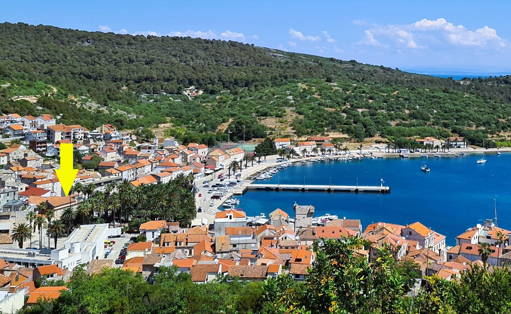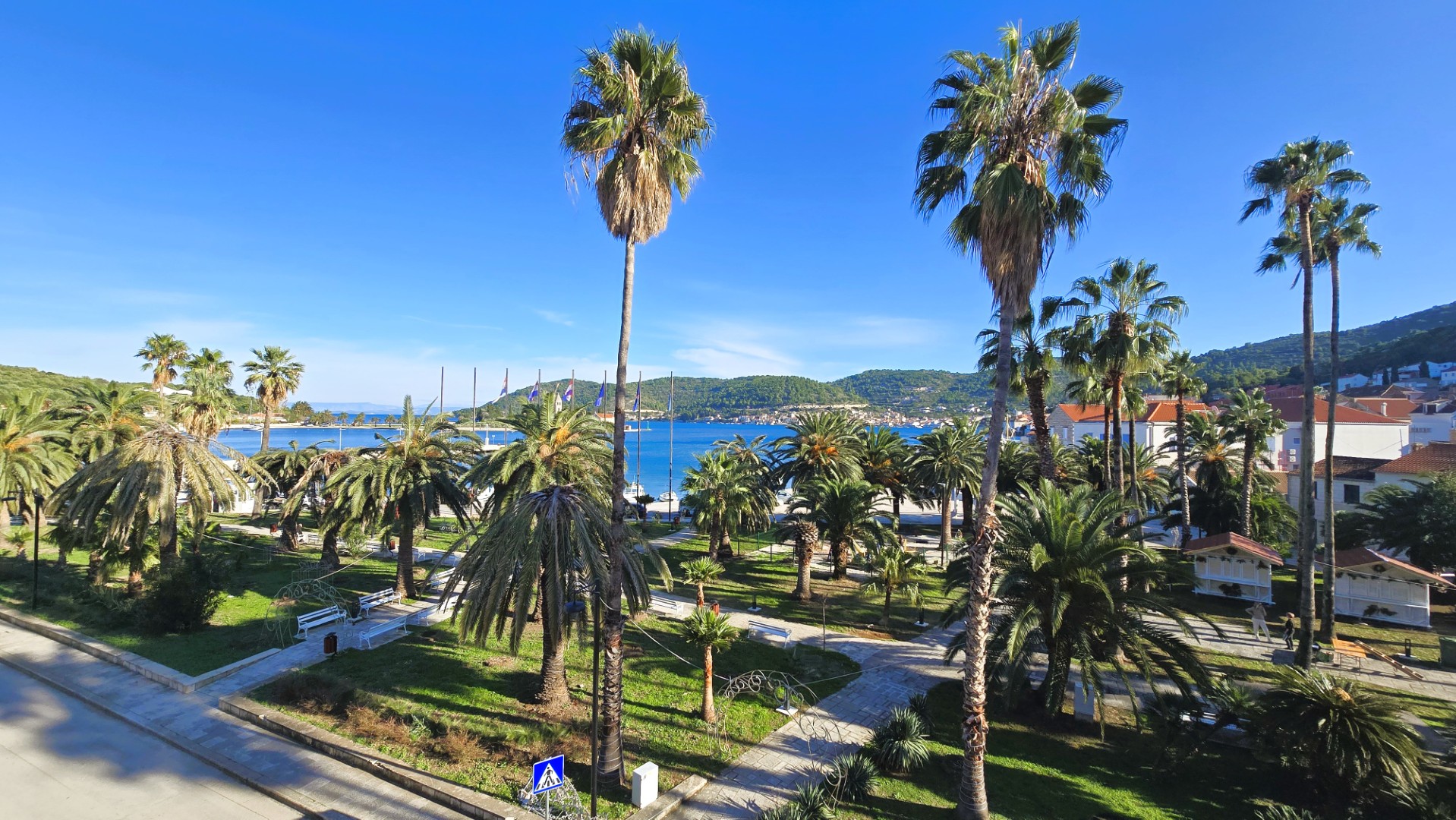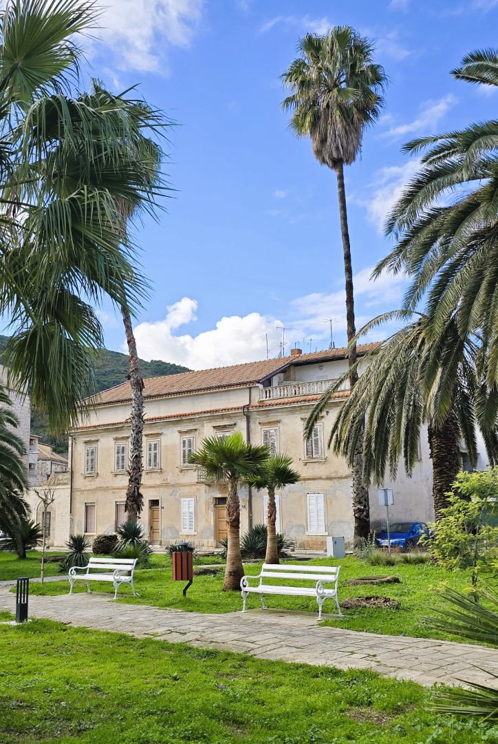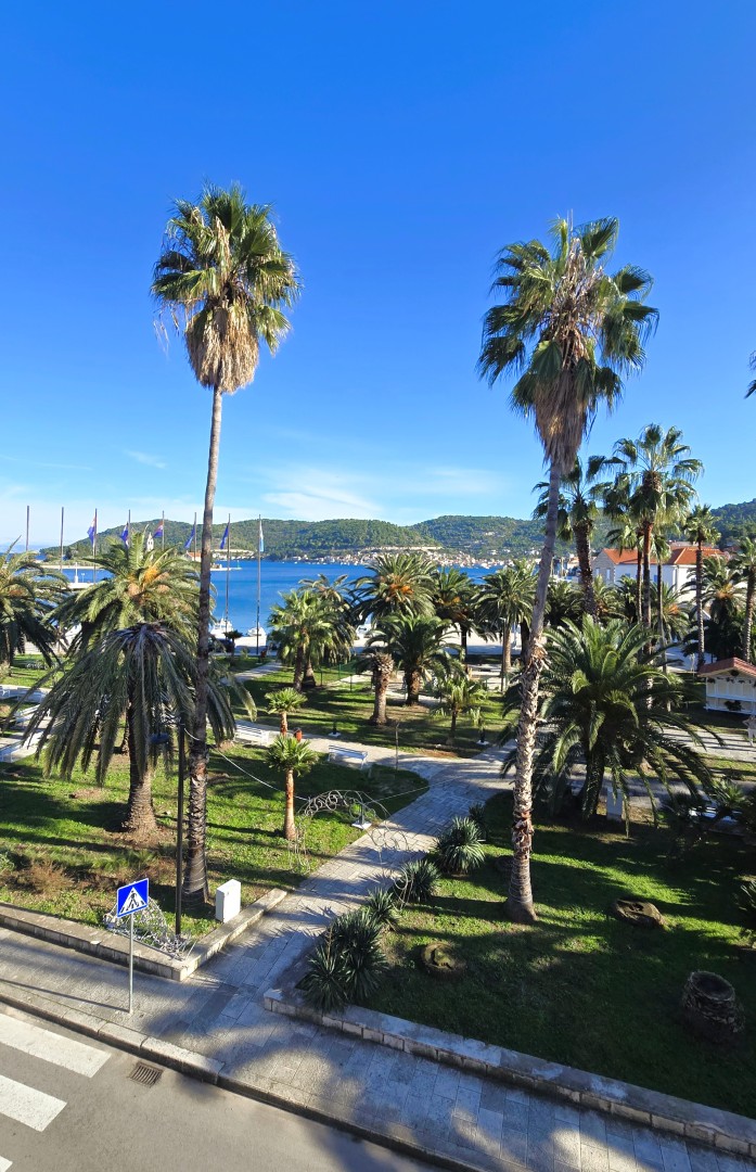 all connected by a spacious staircase, with ceilings higher than 3 meters, overlooking the famous Vis palm park and the sea.