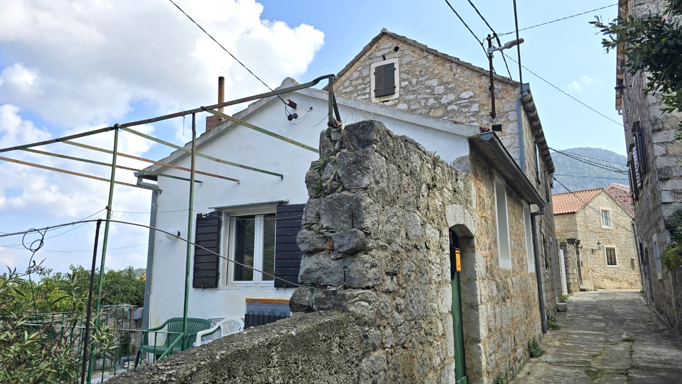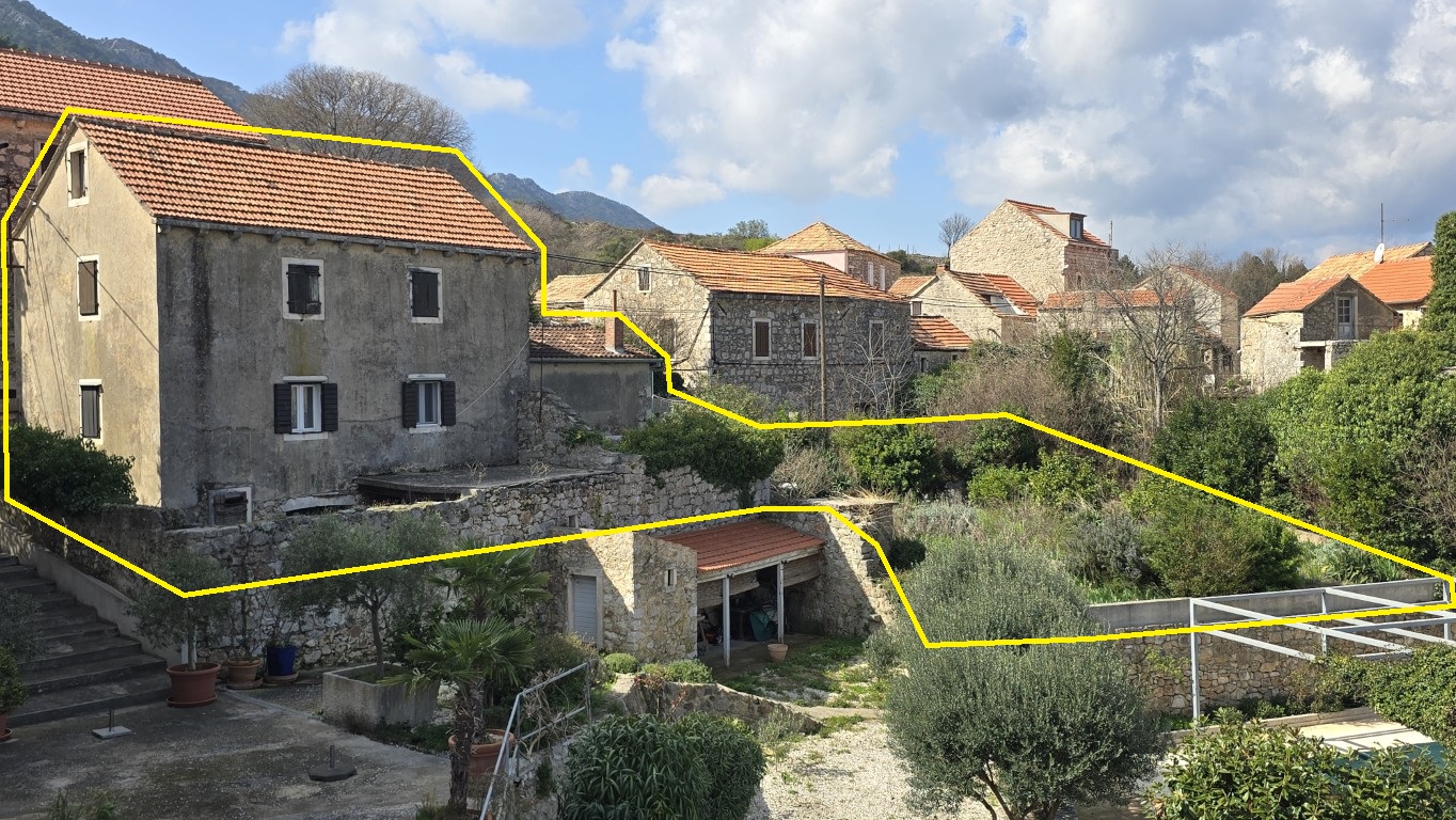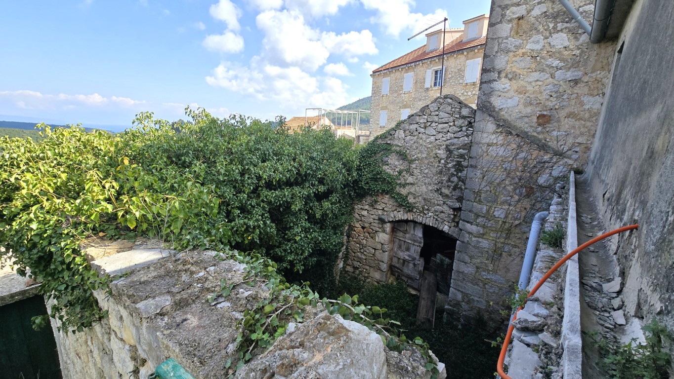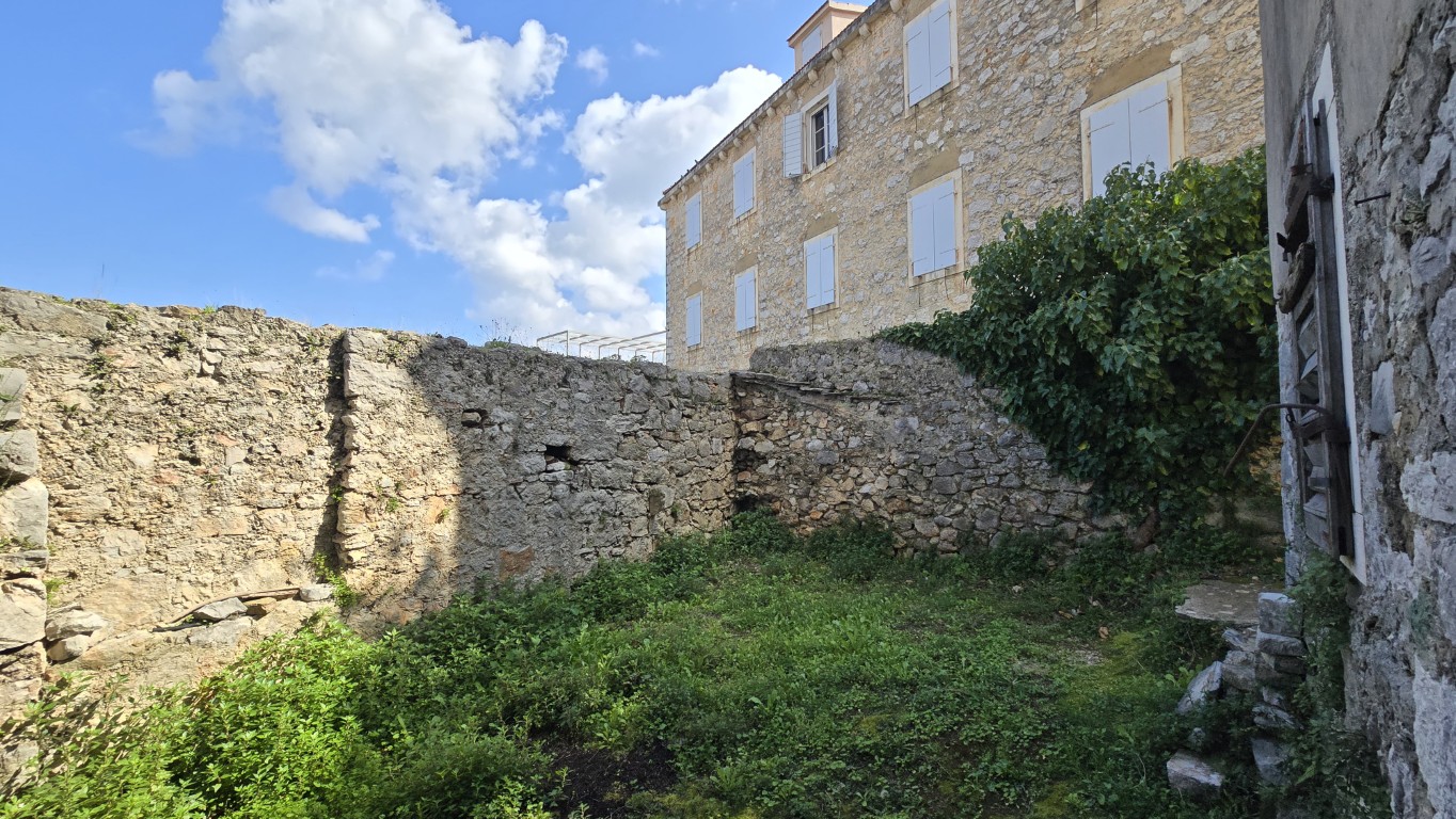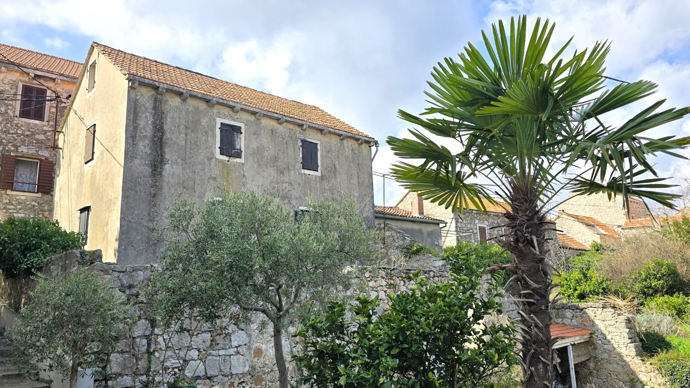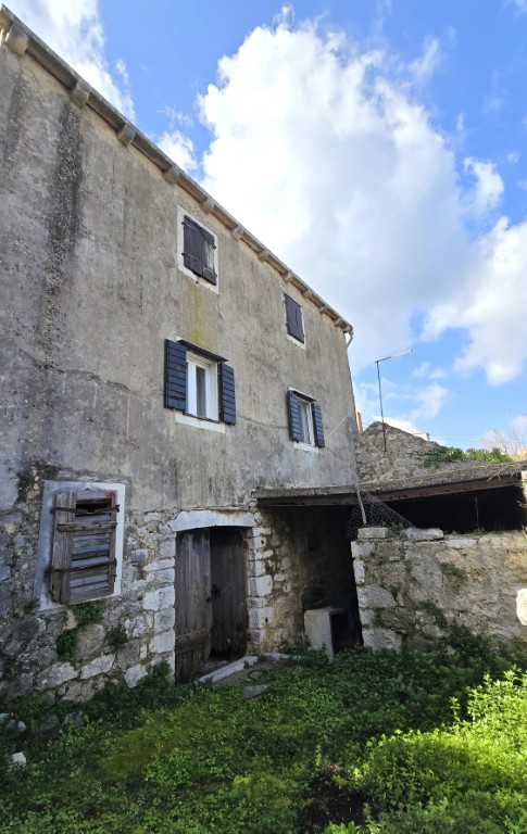 s prekrasnim pogledom na more iz kuće i vrta, priključci vode i struje, septička jama, potrebna kompletna rekonstrukcija, drvene međukatne konstrukcije u dobrom stanju.