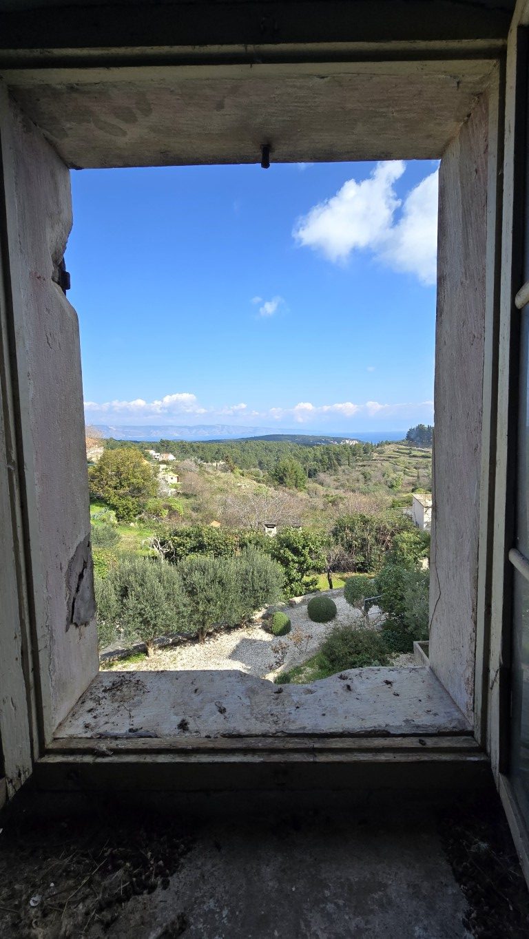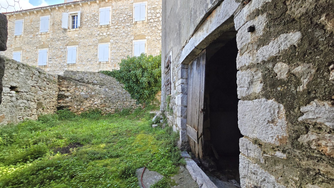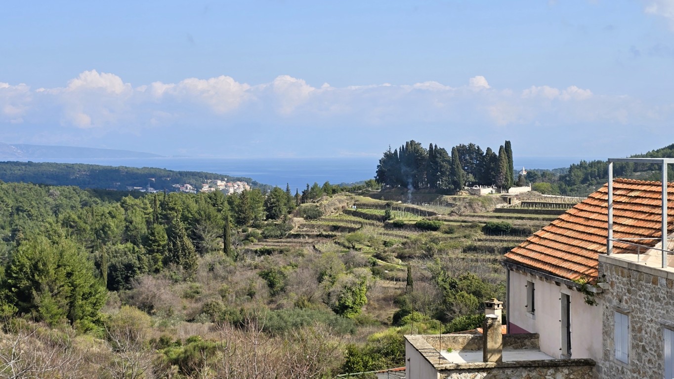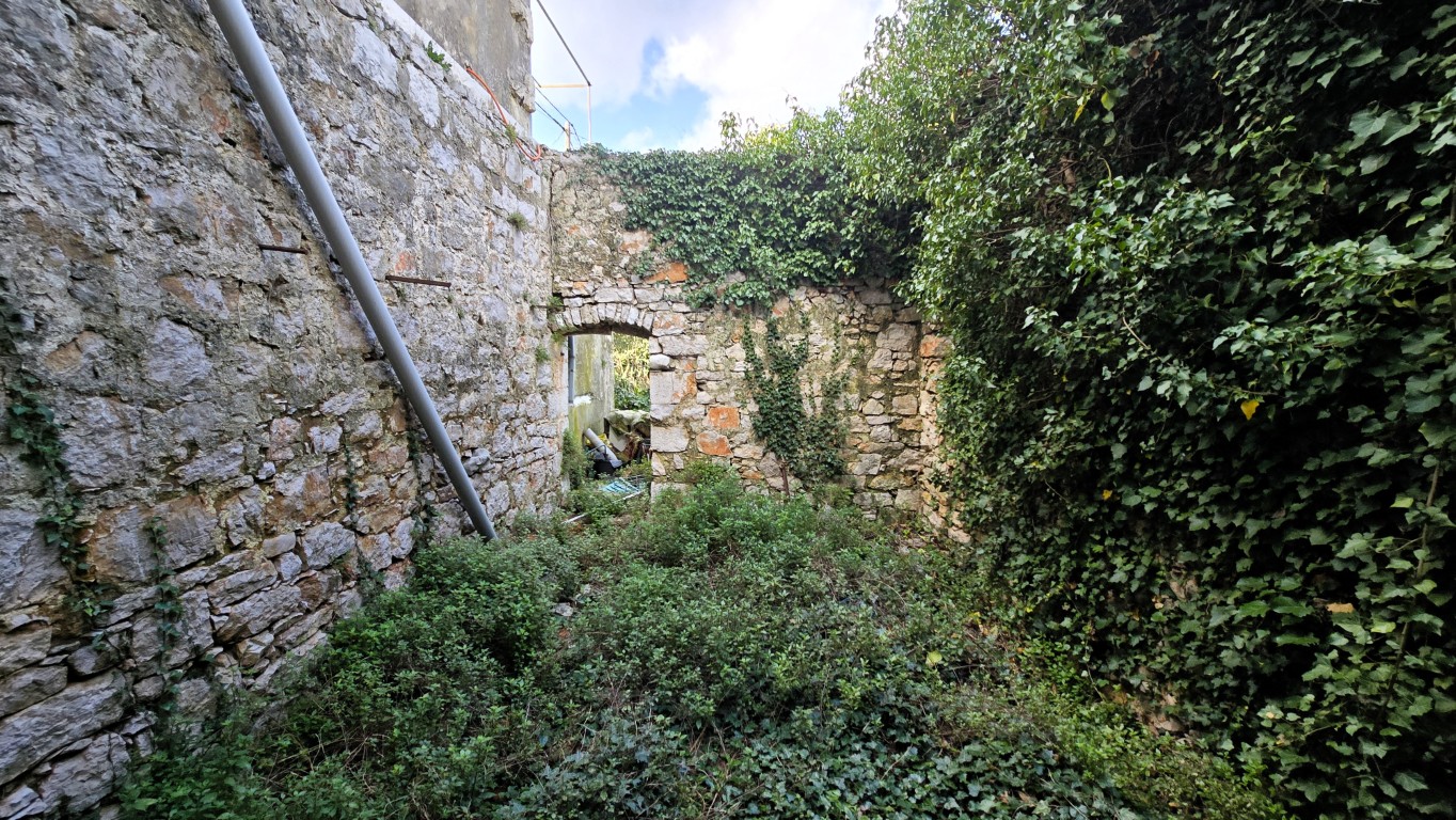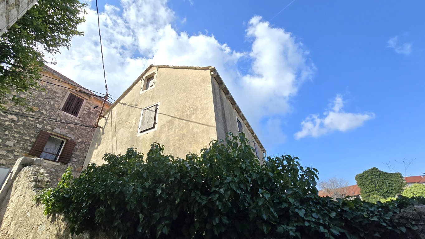 s prekrasnim pogledom na more iz kuće i vrta, priključci vode i struje, septička jama, potrebna kompletna rekonstrukcija, drvene međukatne konstrukcije u dobrom stanju.