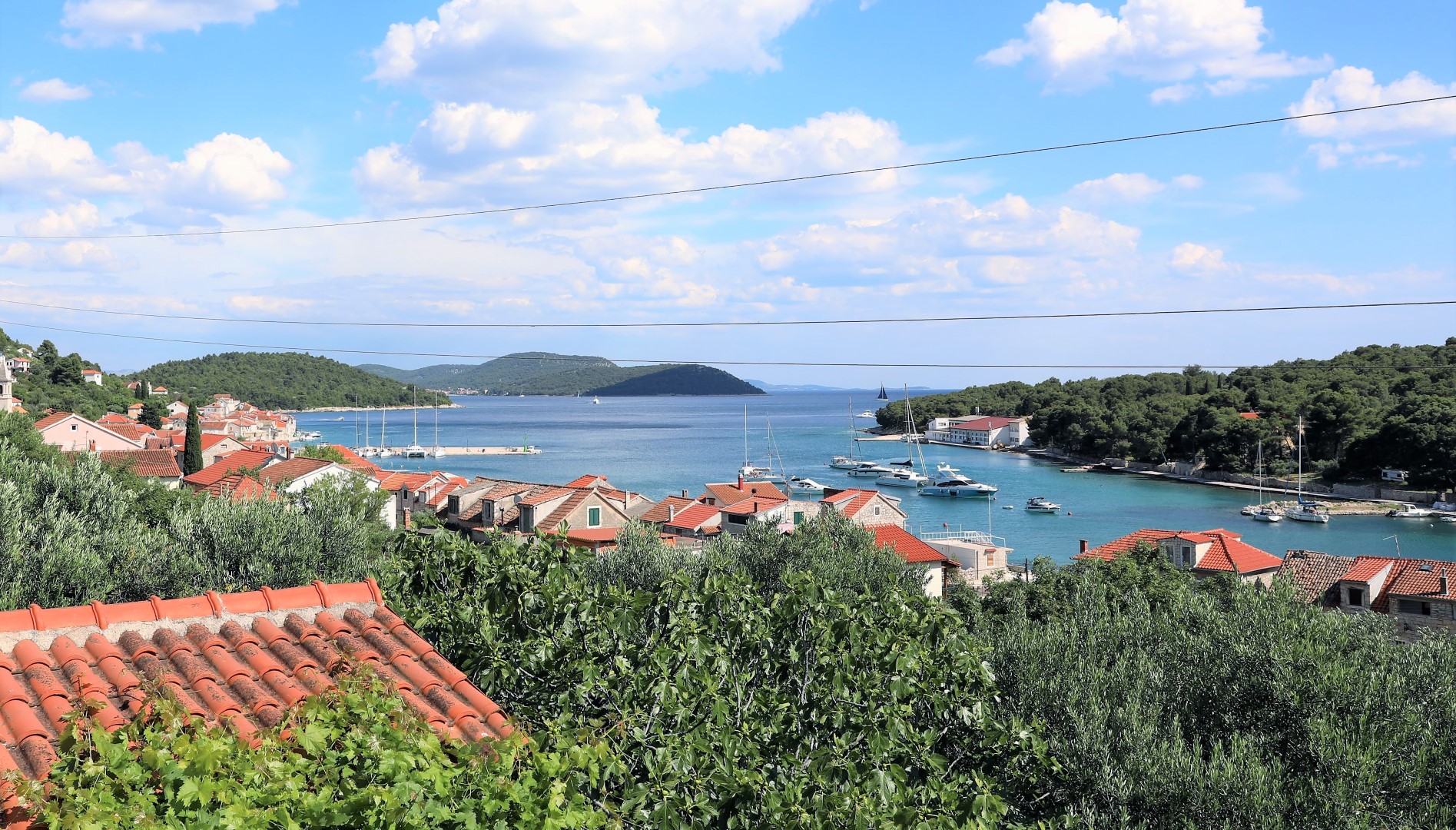 Samostojeća kuća na dvije etaže ukupne površine cca 150 m2, smještena na mirnoj lokaciji 100 metara od mora, s prekrasnim pogledom na more, koja se sastoji od jednosobnog stana i pomoćne prostorije u prizemlju i trosobnog stana s velikom terasom na katu, vanjski roštilj, namještena i opremljena.