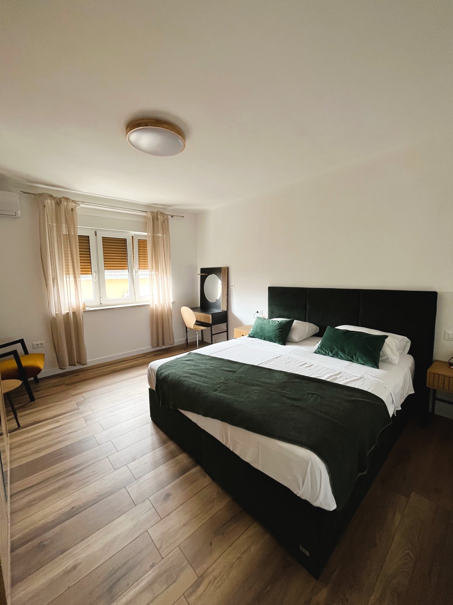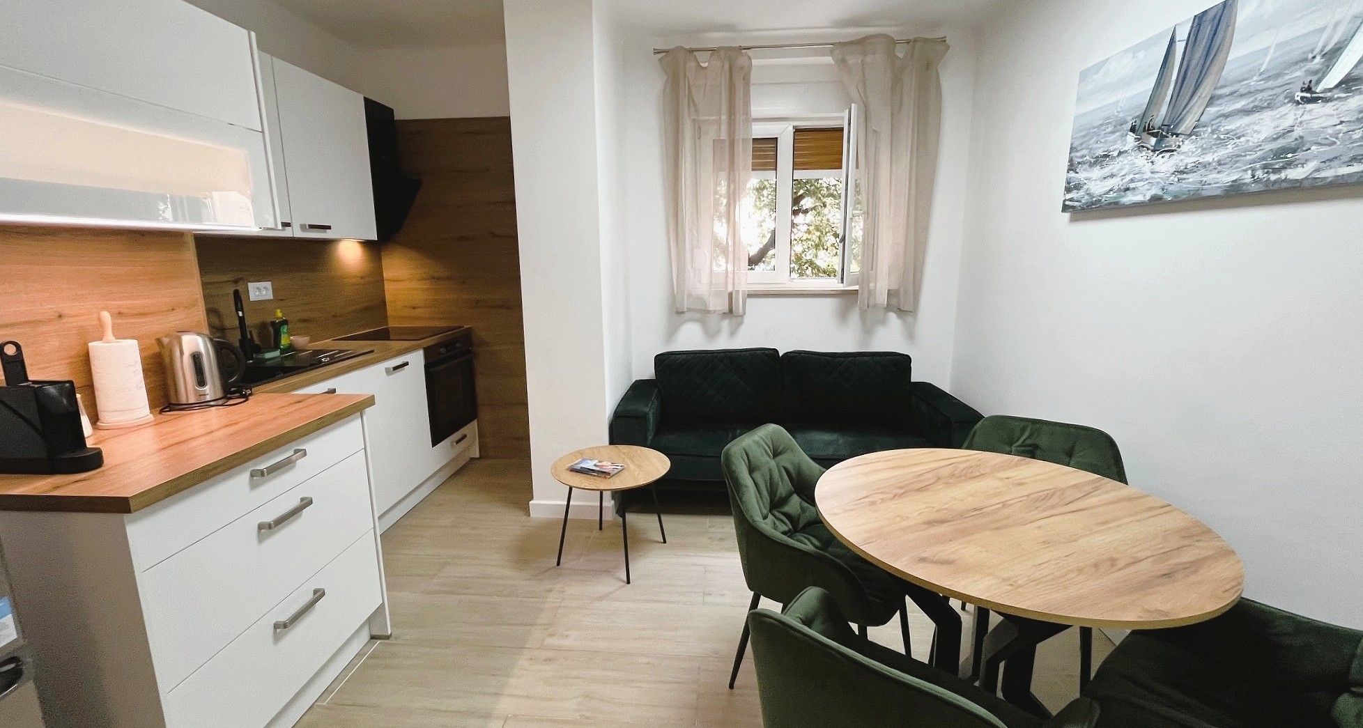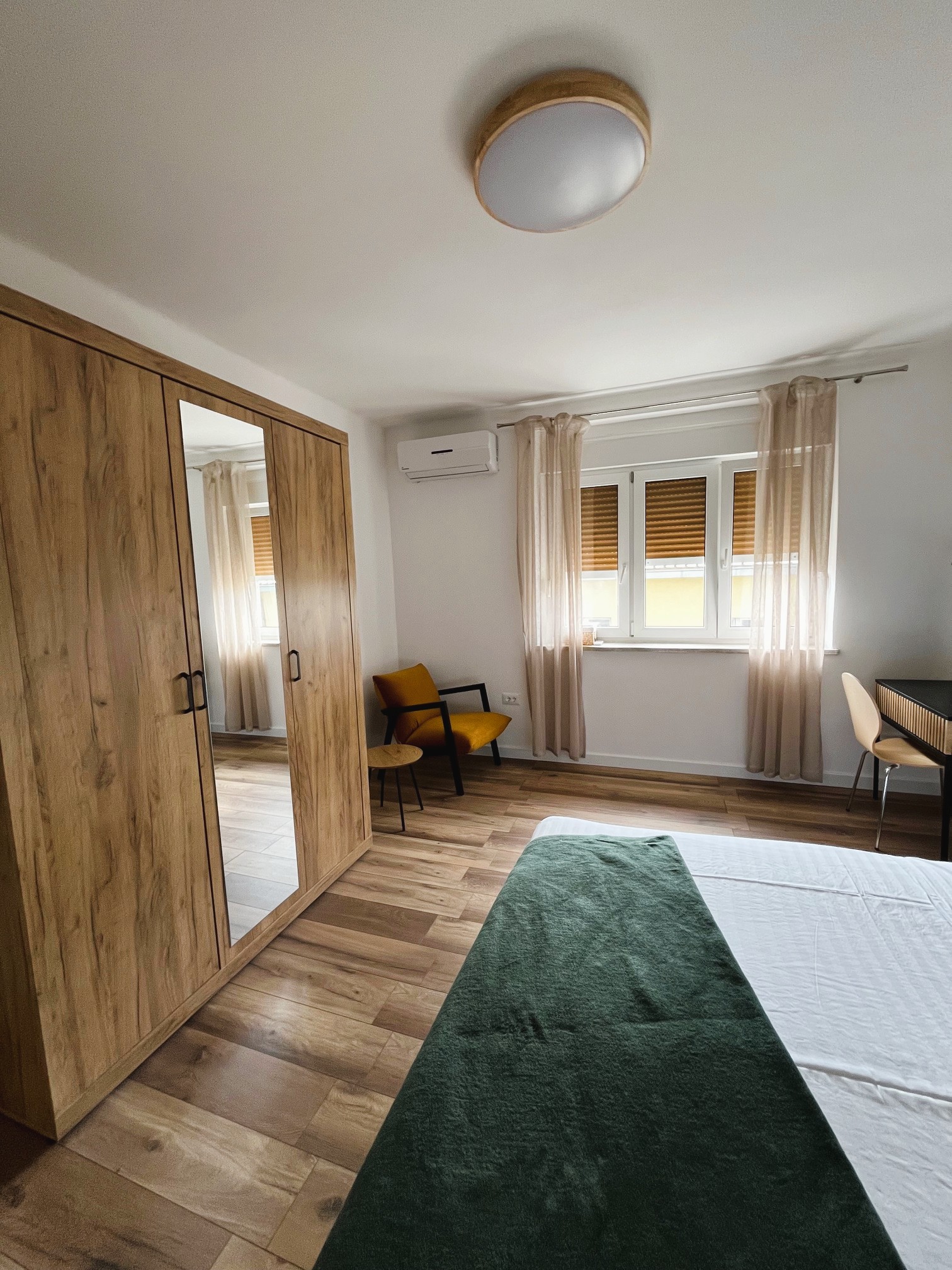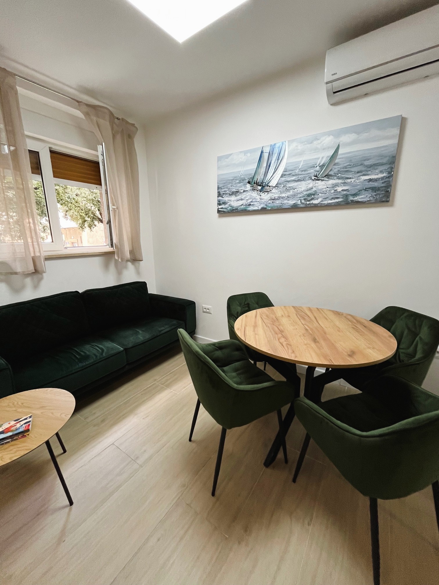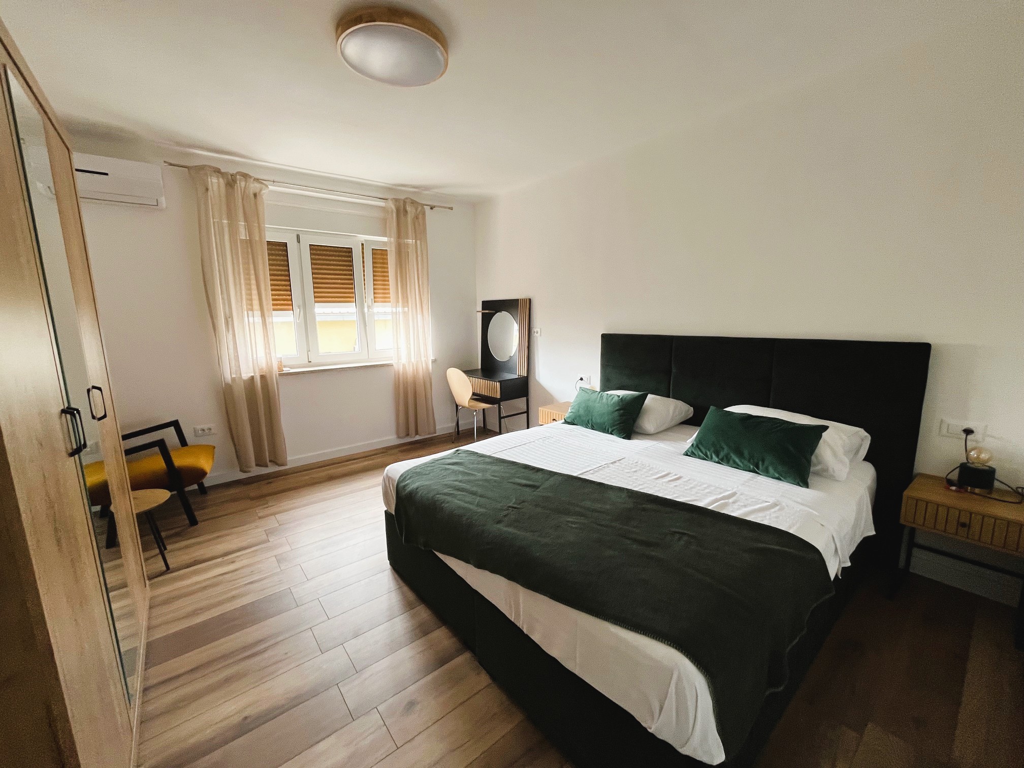 Lijep renoviran dvosoban komforan površine 50 m2, smješten u visokom prizemlju stambene zgrade na Manušu, koji se sastoji od dvije spavaće sobe, hodnika, kupaonice i kuhinje s blagovanicom, svijetao, blizina strogog centra grada, škole, vrtića i svih ostalih sadržaja, idealan i za stanovanje i za najam.