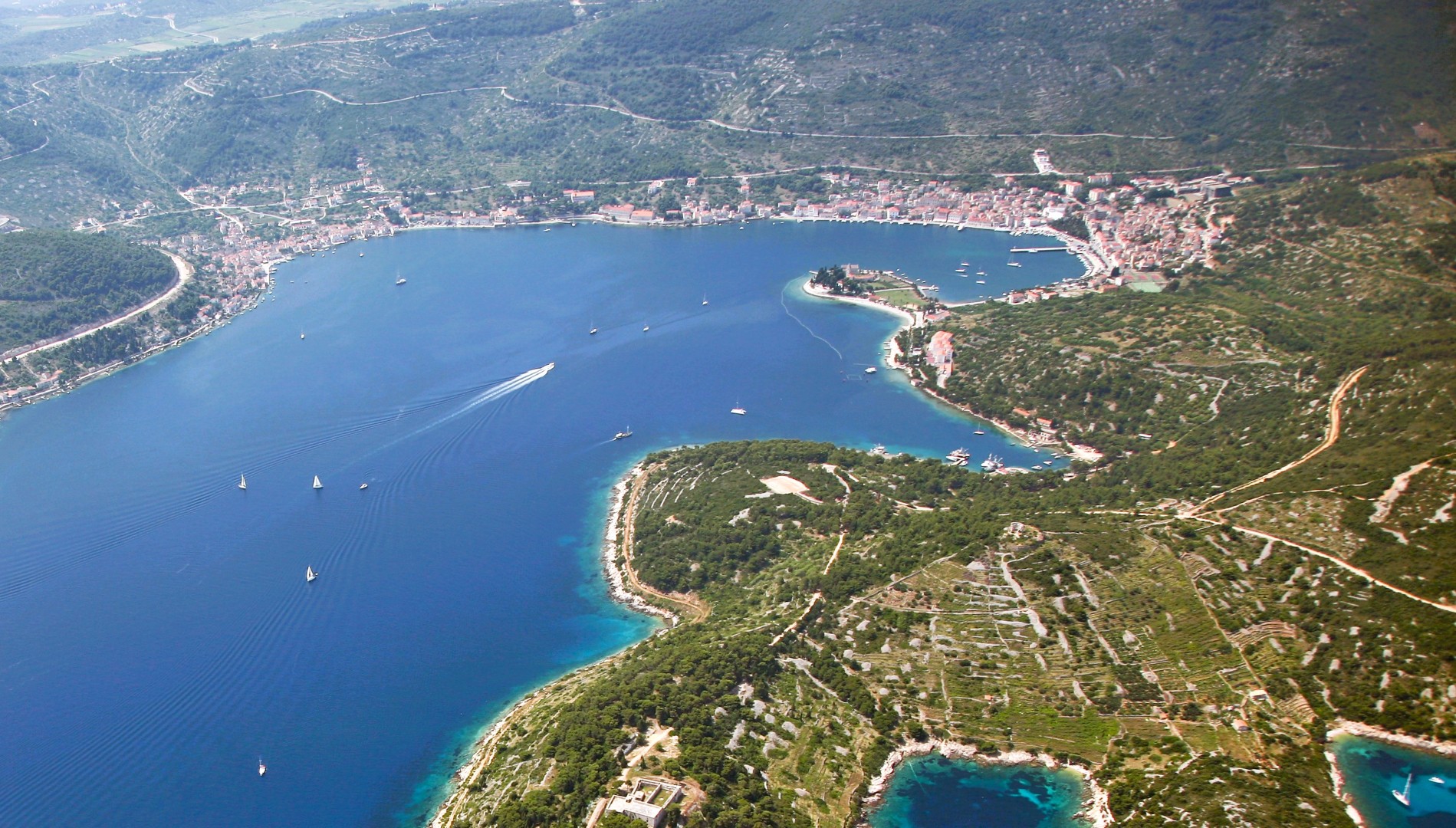 Poljoprivredno zemljište površine 39.000 m2, smješteno cca 900 metara od mora u gradu Visu, s dva manja ruševna objekta u odnjem dijelu zemljišta, obrađivano kroz povijest (vinogradi), asfaltni prilaz autom, pogled na more i višku luku s gornjeg dijela zemljišta.