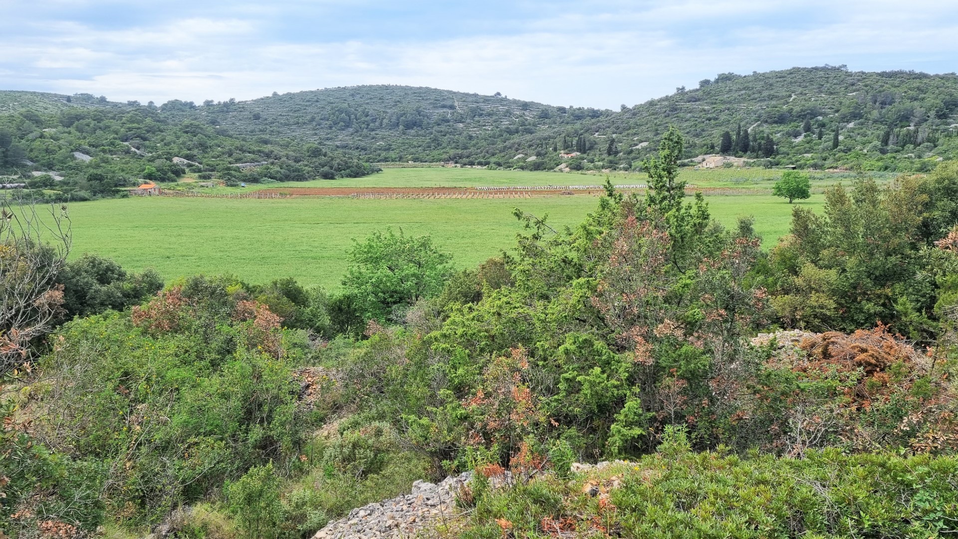 Poljoprivredno zemljište površine 7.490 m2, na mirnoj i lijepoj lokaciji u unutrašnjosti otoka Visa, s pristupnom makadamskom cestom, prekrasan pogled na polje, stari vinograd, mogućnost gradnje poljoprivrednog objekta pov. 20 m2.